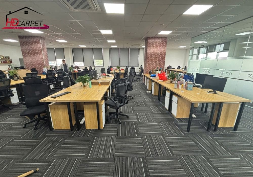 Đây là không gian phổ biến nhất sử dụng thảm tấm. Sản phẩm giúp tạo nên môi trường làm việc chuyên nghiệp, giảm tiếng ồn và mang lại cảm giác thoải mái cho nhân viên.