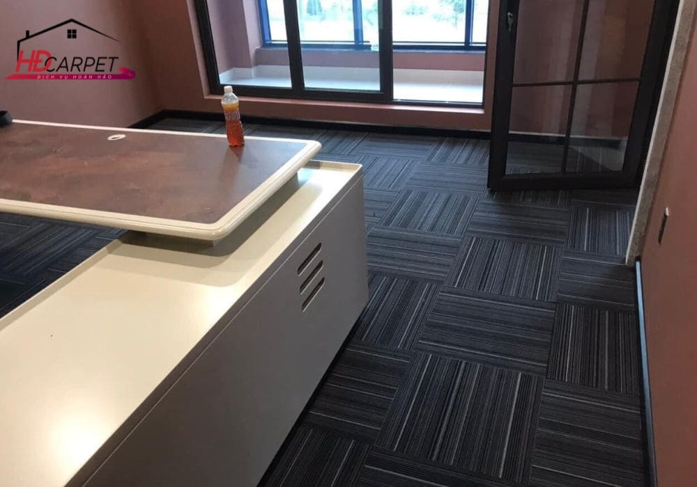 Ngoài ra, sợi Polypropylene còn giúp bề mặt thảm duy trì được độ mềm vừa phải, mang lại cảm giác dễ chịu khi di chuyển và góp phần giảm tiếng ồn trong không gian làm việc.