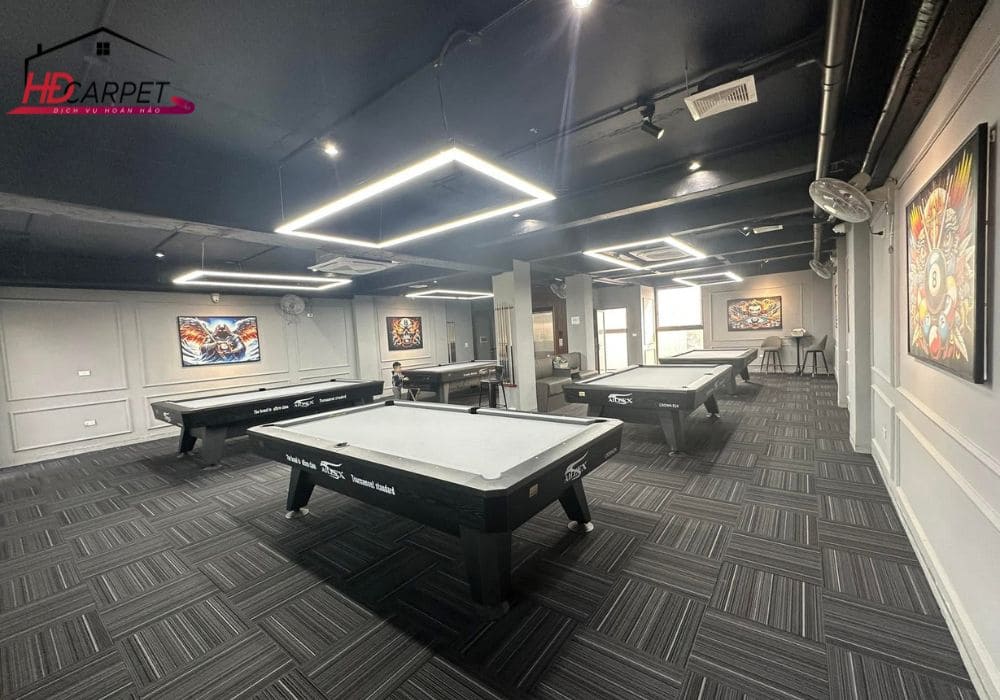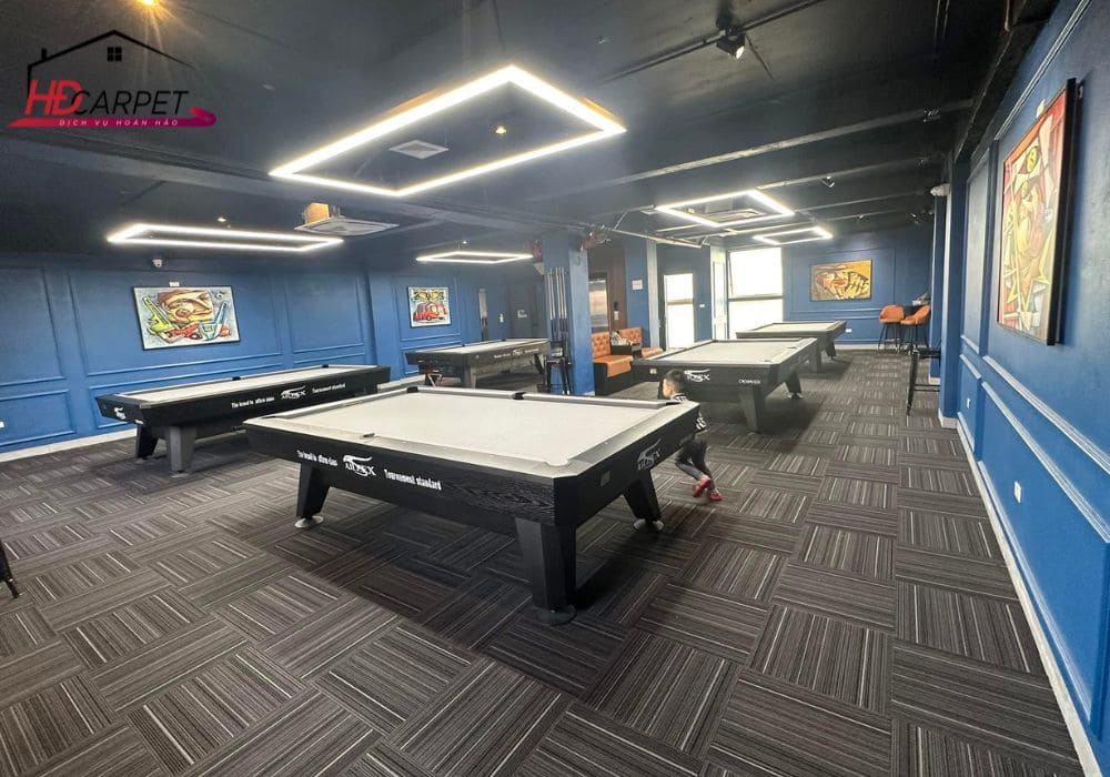Tại các khu vực cần sự tập trung cao như phòng họp hoặc không gian coworking, thảm tấm giúp hạn chế âm thanh di chuyển và tạo không gian làm việc dễ chịu hơn.