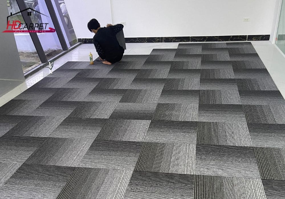 Với dạng module vuông, việc lắp đặt thảm tấm diễn ra nhanh gọn và tiết kiệm thời gian. Điều này đặc biệt phù hợp với các dự án văn phòng cần hoàn thiện trong thời gian ngắn.